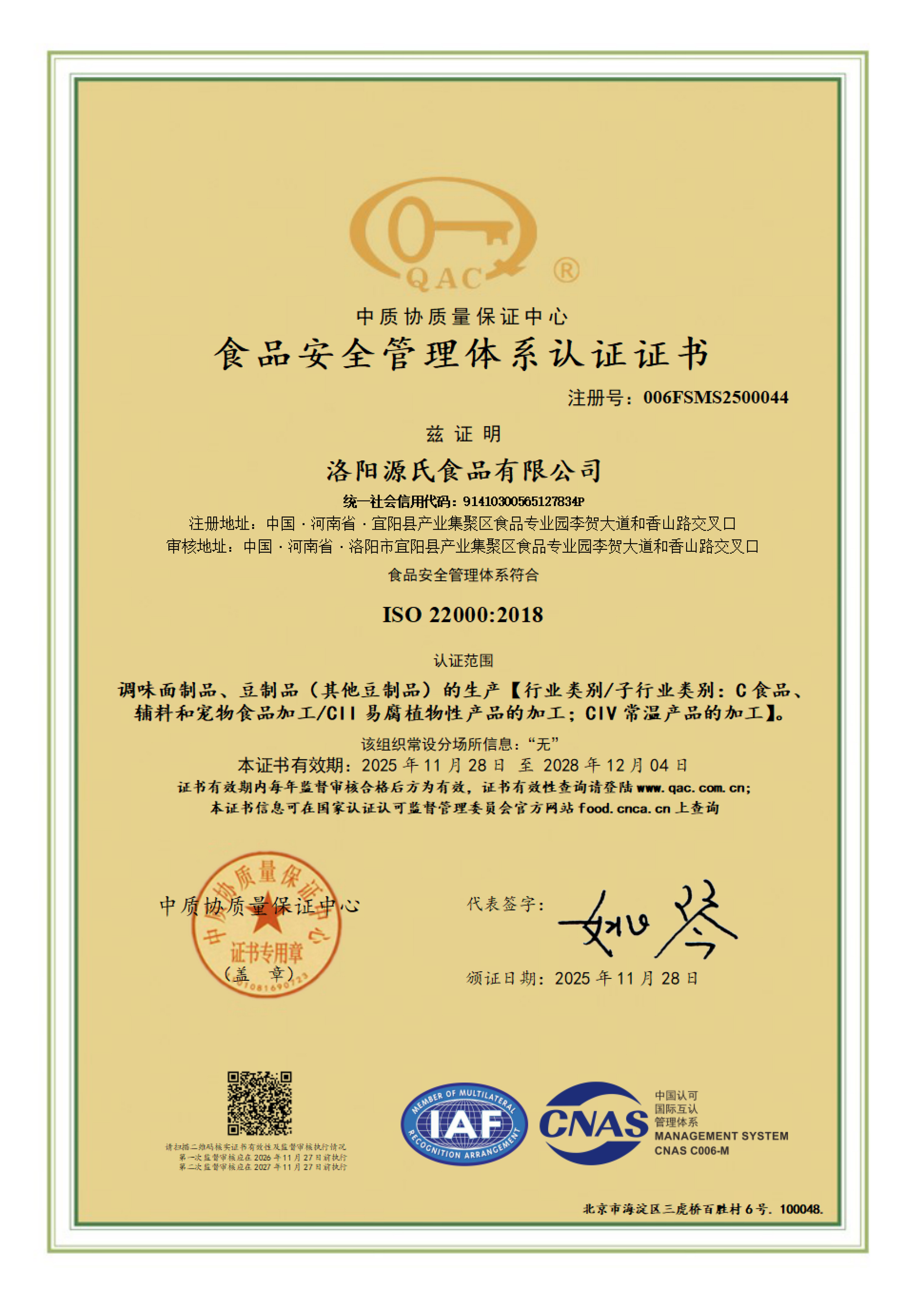 危害分析與關(guān)鍵控制點(HACCP)體系認證證書