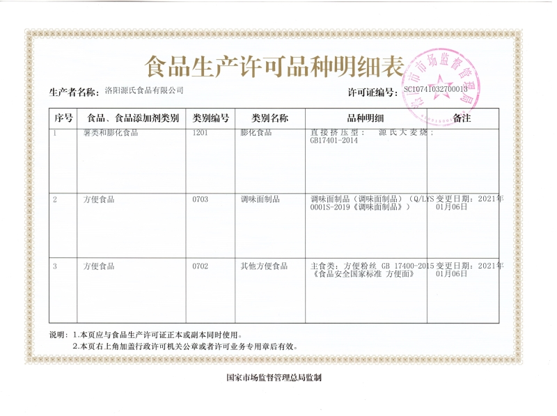 源氏食品生產(chǎn)許可證及細(xì)節(jié)列表 發(fā)布時(shí)間:2021-03-02作者:來(lái)源:洛陽(yáng)源氏食品有限公司點(diǎn)擊:5938 上一篇:營(yíng)業(yè)執(zhí)照 下一篇:老式大辣片出廠檢驗(yàn) 分享到:0 用手機(jī)看 拍下二維碼,信息隨身看 試試用微信掃一掃,在你手機(jī)上繼續(xù)觀看此頁(yè)面。