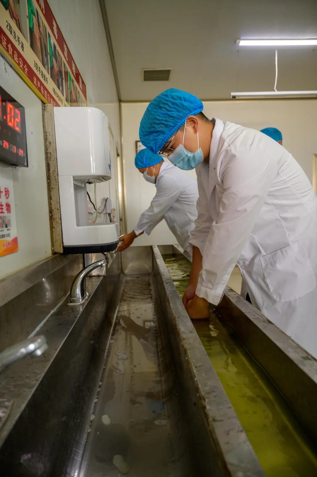 嚴(yán)格遵守源氏食品相關(guān)規(guī)定,全副武裝、洗手消毒、360度風(fēng)淋除塵之后進(jìn)入生產(chǎn)車間